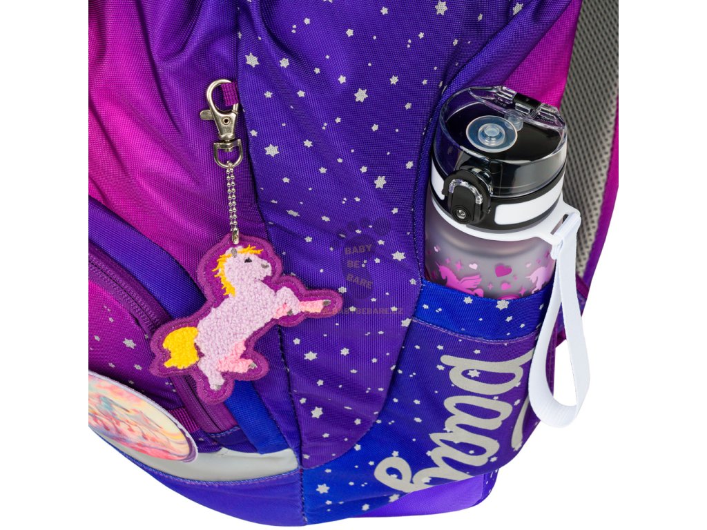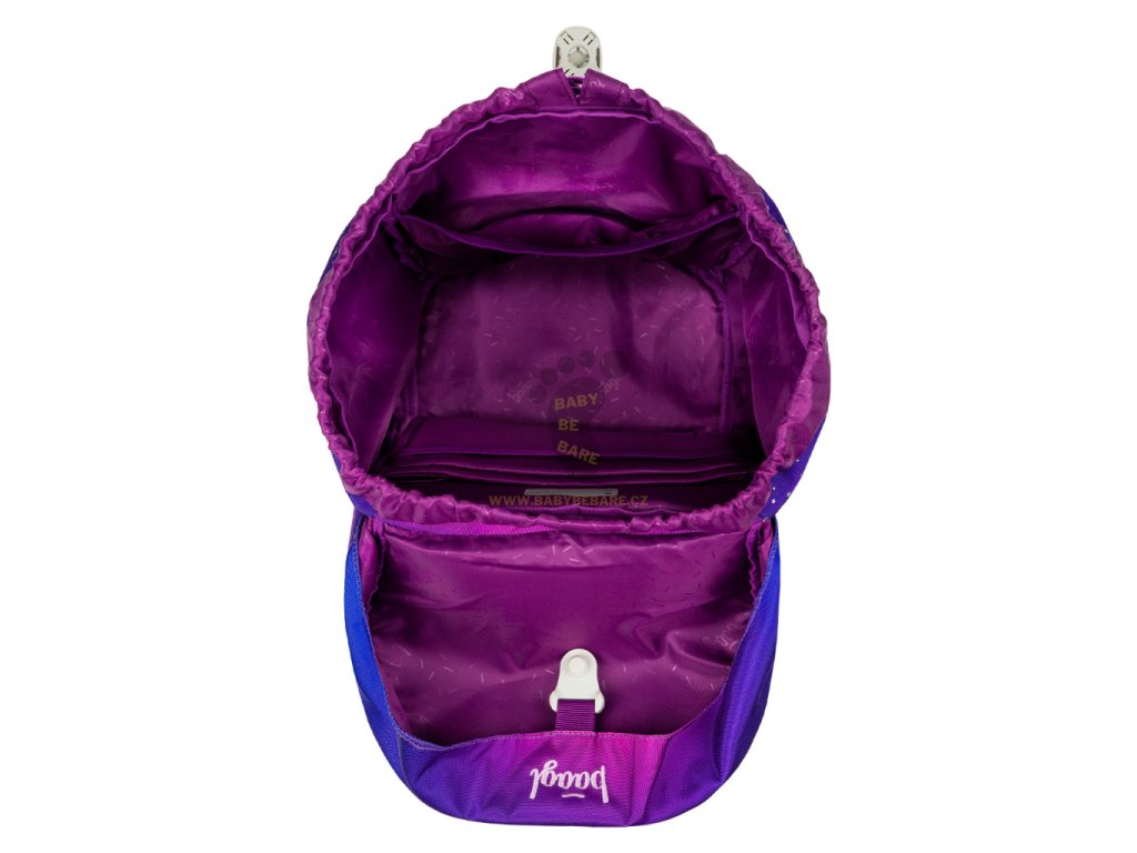 • Jednokomorové vnitřní uspořádání s kapsou a gumičkou pro uchycení desek na zádové straně slouží ke snadné organizaci všech školních pomůcek.