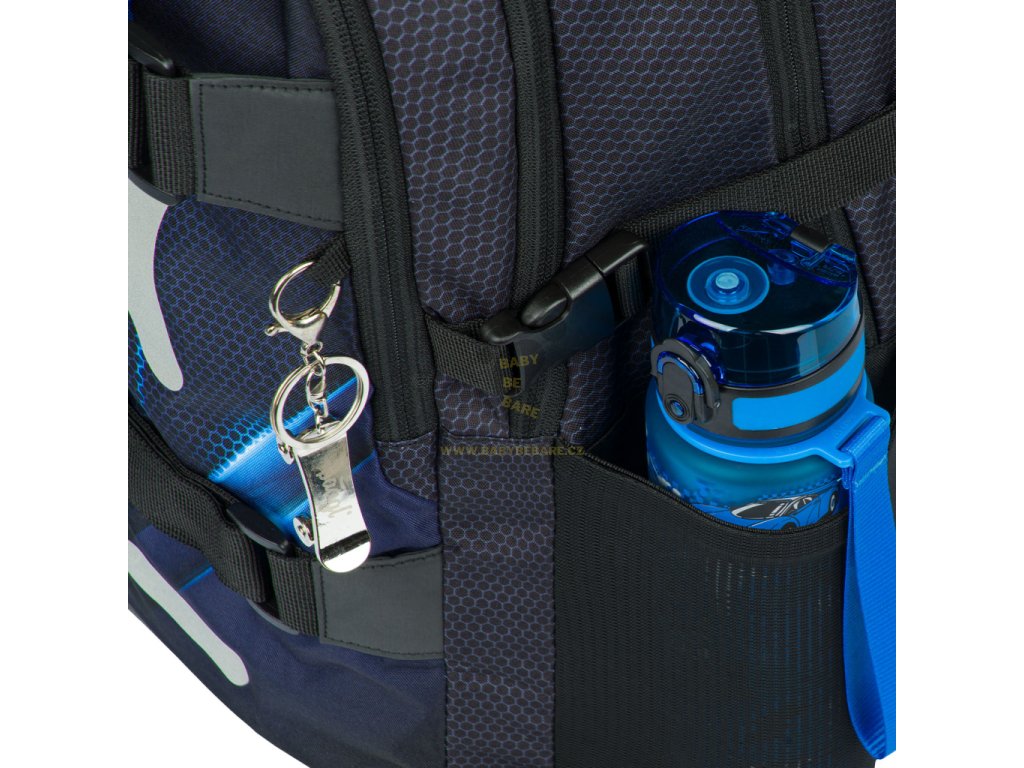 • Boční kapsy z pevné síťoviny, které jsou vhodné pro jednu z našich láhví na pití.