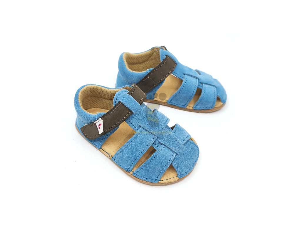 Letní dětské sandálky EF Barefoot Blue spojují zdravý barefoot střih s jednoduchým designem a příjemnými materiály. Díky flexibilní podrážce, široké špičce a měkké broušené kůži poskytují maximální pohodlí a volnost pohybu. Ideální parťák pro teplé dny!