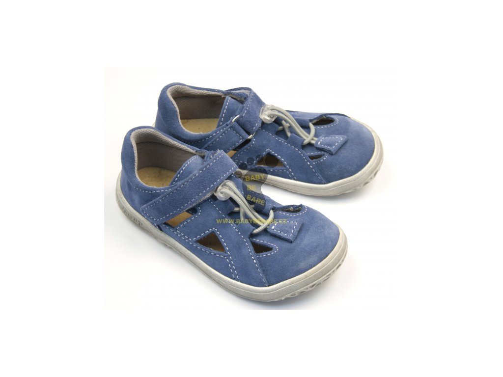 Letní obuv vyrobena z velurové kůže s měkkou textilní podšívkou s elastickým rychlozavazováním, které je doplněno páskem přes nárt s velcrem. Obuv má vyjímatelnou stélku . Jedná se o barefoot obuv na velmi flexibilní a odolné podešvi.