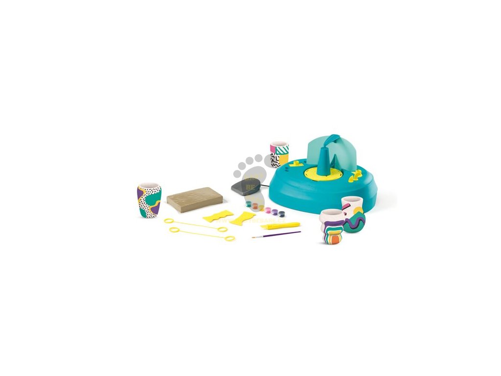 Sada dále obsahuje:, * hrnčířské nářadí, * 1 kg přírodní hlíny, * příslušenství potřebné k ozdobení výtvorů, * součástí balení je elektrický adaptér (transformátor), * snadné čištění - všechny plastové díly jsou odnímatelné a je možné je mýt v myčce