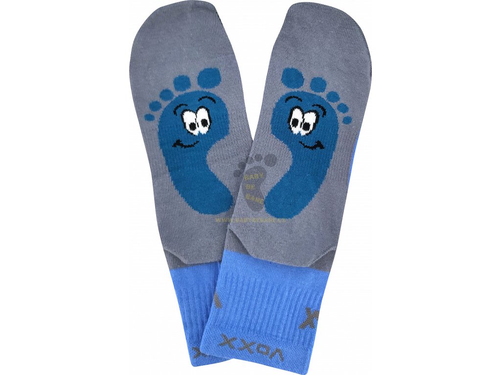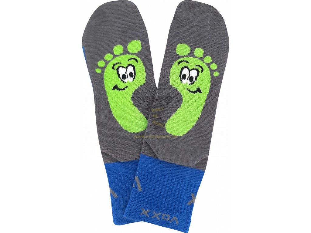 Dětské ponožky BAREFOOTIK jsou pohodlné, slabé ponožky ze sportovní kolekce VoXX®. Mají jedinečný ergonomický tvar, který se maximálně přizpůsobí noze. Široká prstová část a anatomické tvarování na levou a pravou nohu předurčují ponožky pro nošení v barefootové obuvi! Špička ponožky je uzavřena náročnějším řetízkováním, proto je spoj dokonale hladký a nehrozí, že ponožka bude tlačit. Ponožky mají teplotní třídu A, tyto tenké ponožky jsou ideální na nošení po celý den v teplotách od +10°C do +35°C. Díky obrázku na chodidle si vaše děti už nespletou, na kterou nohu ponožka patří.